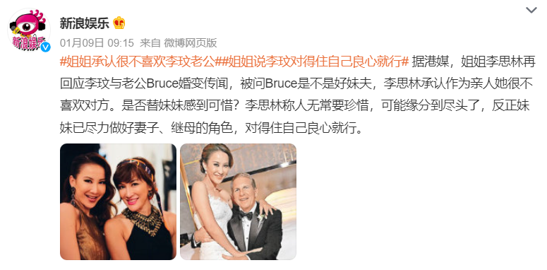 李玟二姐暗示:“这是她老公发的并不是我准备的”