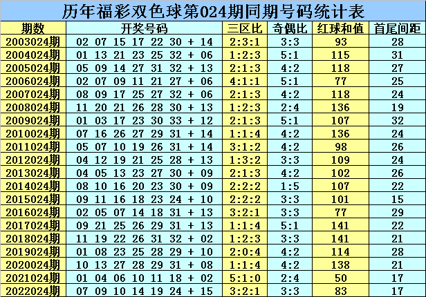 三离别析:在历史第024期同时开奖中,红球三区比为41:30:49,红二区号码出现较少。其中红一区莫得出现断区时局,有2次大热时局,红二区有1次断区,莫得出现3个以上红球的时局,红三区有1次断区,有4次出现3个以上红球的奖号。瞻望本年同时各区号码均衡,三区比参考2:2:2。