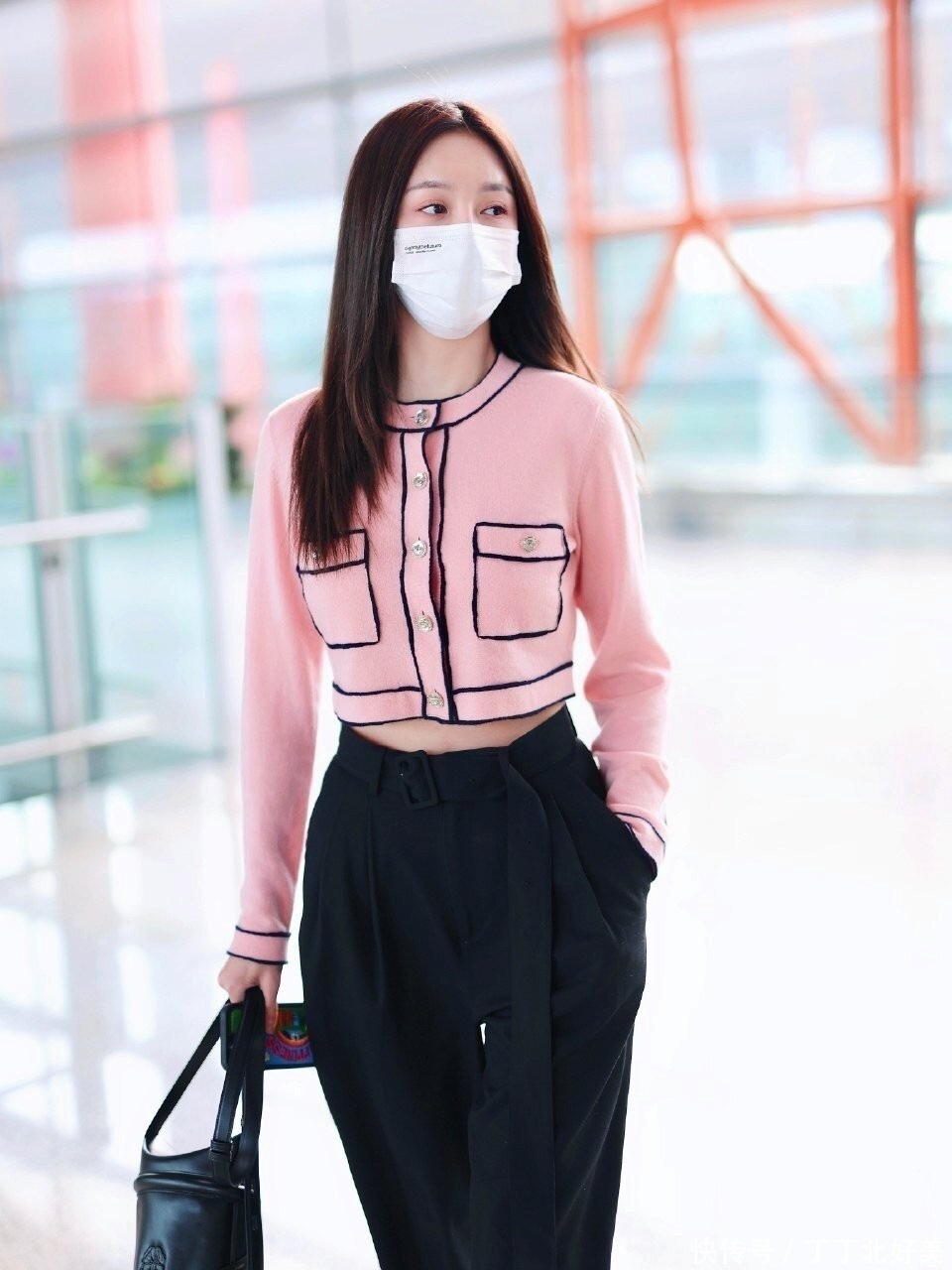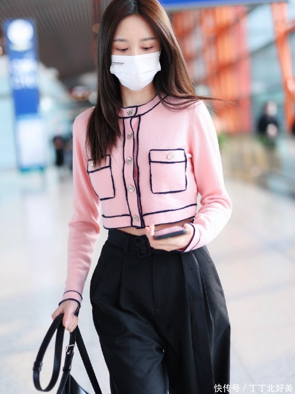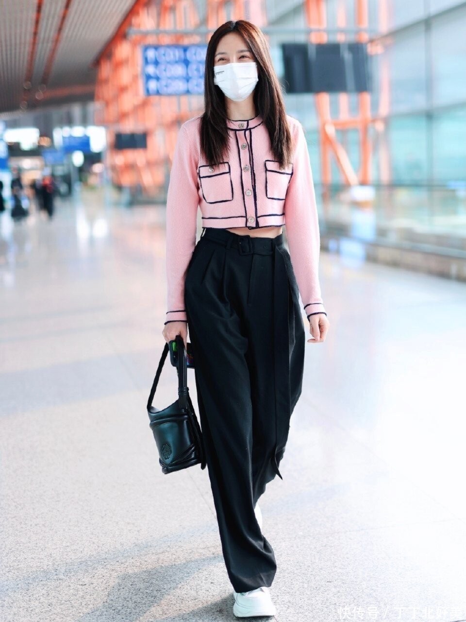 下半身配上高腰的玄色西装阔腿裤,而这么的穿搭形势也更能突显出大长腿,玄色的西装长裤穿上给东说念主的嗅觉比拟的帅气,和粉色的真诚衫概况酿成立场上的对比。