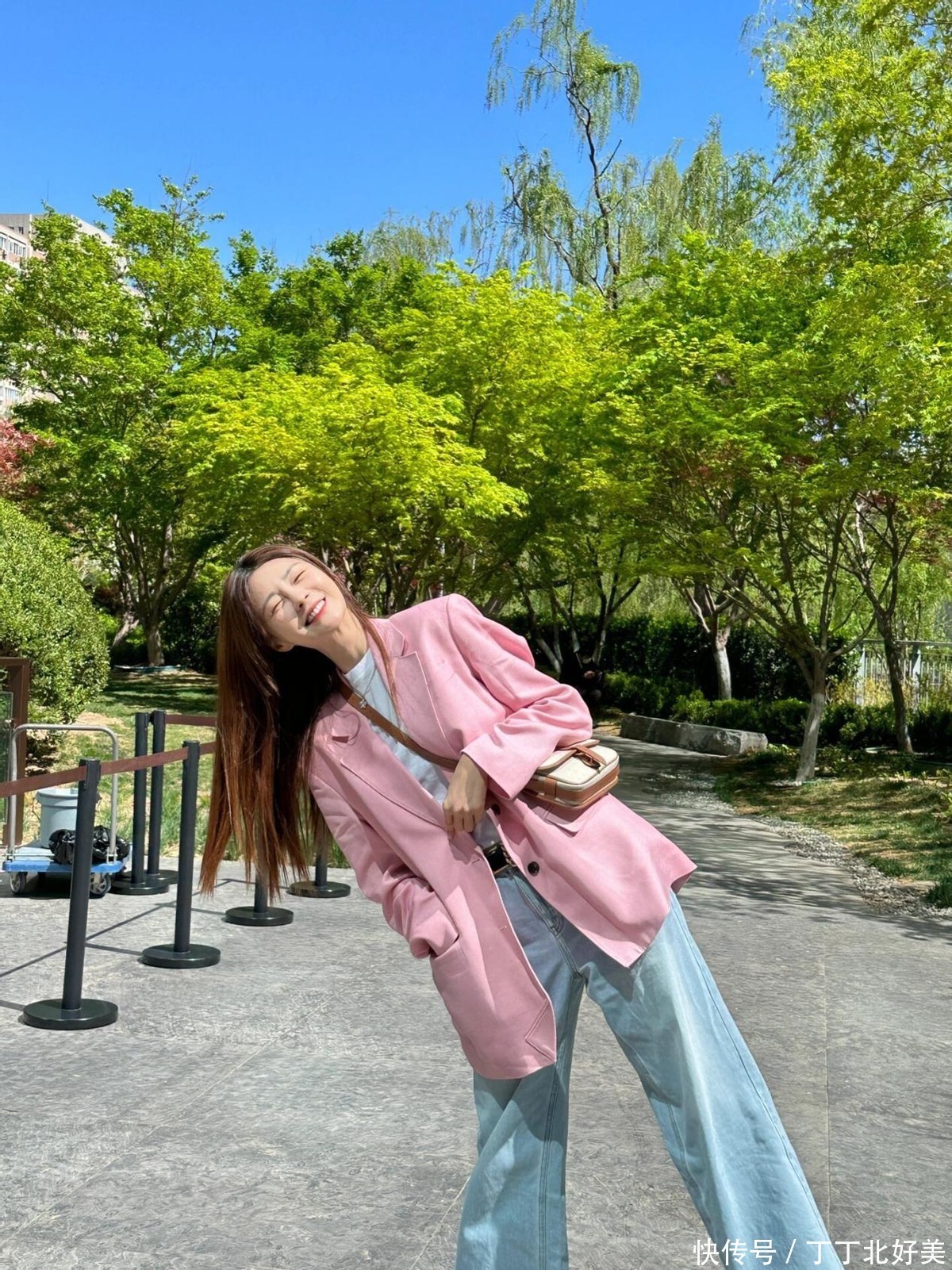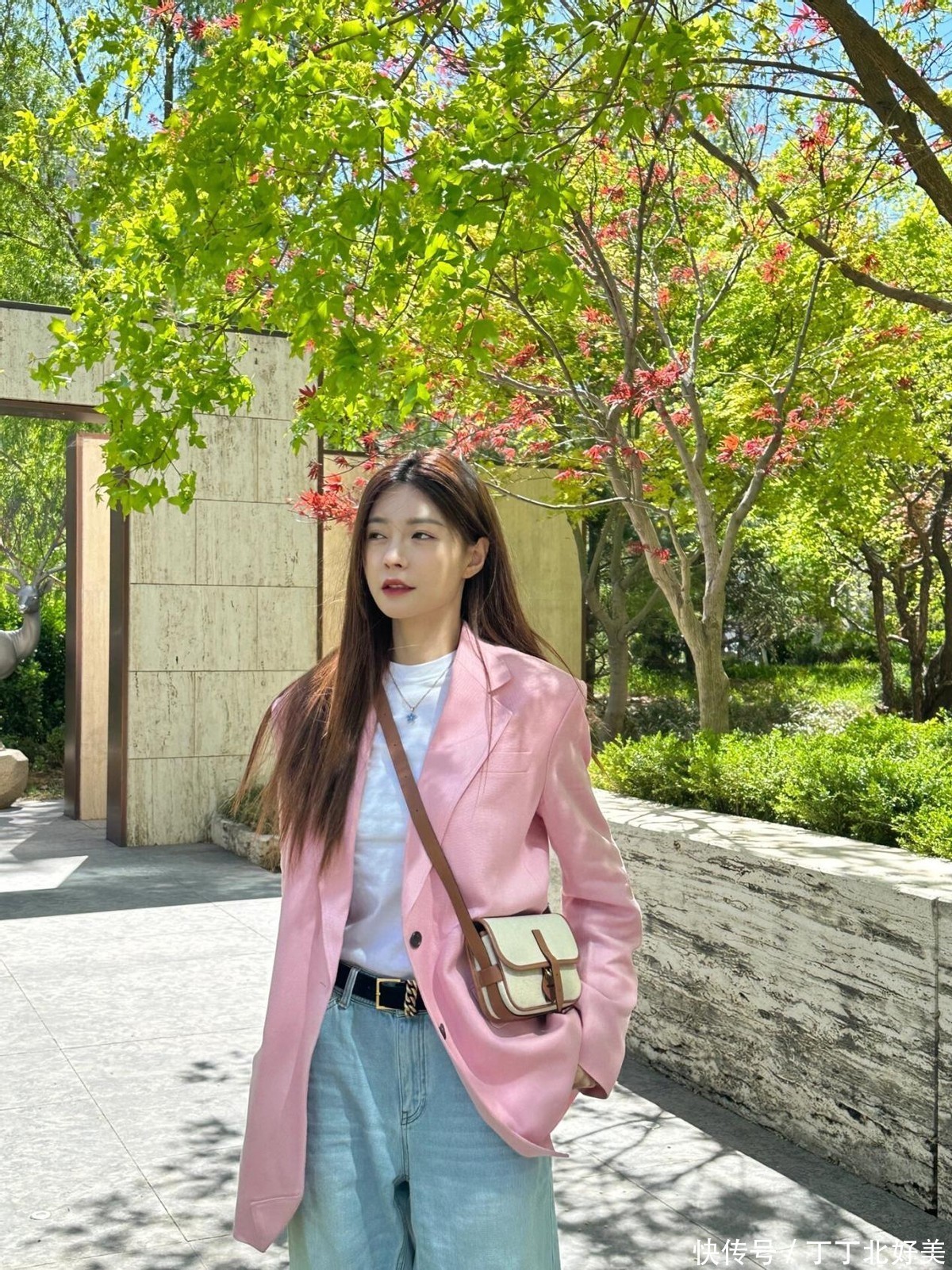 西装和什么样的单品是绝配?这个问题每个东说念主齐有不同的谜底,有的东说念主可爱搭配裤子,而且有的东说念主可爱穿裙子。若是你想要穿出惬意,检朴的立场,随着沈梦辰搭配牛仔裤即是个可以的念念路,蓝色牛仔裤和粉色西装的辘集会更显清纯。